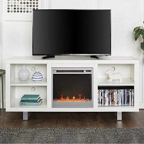 New 58 Inch Wide Simple Modern Fireplace Television Stand in White FinishWALI TV Stand Table Top for Most 22”-65” LCD Flat Screen TV, VESA up to 800 x 400mm (TVS001), BlackWalker Edison Furniture Company 70" Modern Farmhouse Barn Door TV Stand - Grey WashTangkula TV Stand for 60” Television, TV Ark with Sliding ...